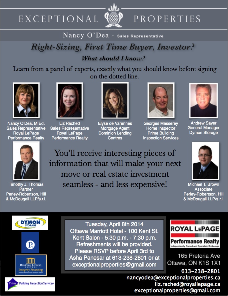 Please RSVP before Thursday, April 3rd to Asha Panesar at 613-238-2801 or at exceptionalproperties@gmail.com