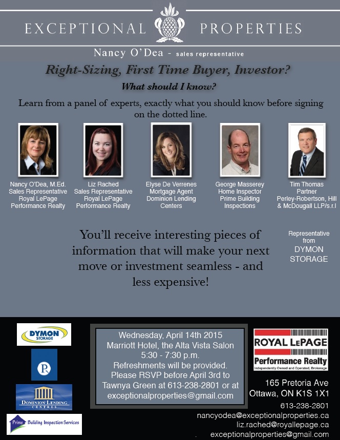 Please join us for our Buyer Seminar on April 14, 2015, 5:30-7:30pm. RSVP by April 3rd to Tawnya @ 613-238-2801.