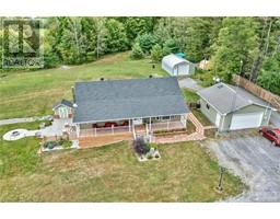 PRIDE OF OWNERSHIP!! Beautifully maintained family home on 64 ACRES You are welcomed home by a large front veranda. Spacious foyer with tile flrs & a dcc. Sun filled living rm with hard wd flrs & a corner gas fireplace. COUNTRY sized kitchen with tile flrs, generous supply of quality cupboards with a cherry wood finish, large eating area & access to a private 16ft x 22ft deck. 3 spacious bedrms, all with hard wd flrs & the master has a walk in closet!. Spacious main bathrm with heated flrs. Handy main flr laundry/mudrm + a 3 piece bathrm. The LL offers a spectacular family rm with a wet bar, wood stove, quality laminate flring & a WALK OUT to your side yard!! Plus loads of storage space. Detached garage is 24ft x 28ft approx ,built in 1994 The Quonset building is 20ft x 30ft and built 2013 Frontage on 2 roads. Propane $300/month Hydro $200/month Wood $400/yr Peaceful, private property. Check out the DRONE VIDEO!! (id:25350)