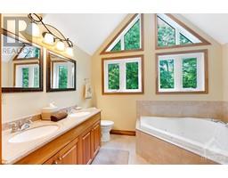 $260 YearlyOn Patterson Lake, exquisite 2015 home with 108' waterfront. Custom 4bed, 4bath home also has self-contained suite in walkout lower level. Exceptional quality, elegant design and fine details including select oak and porcelain floors plus cherry crown moulding. Living room cultured-stone hearth propane fireplace and walls of windows up to soaring ceiling. Formal dining room. Grand kitchen of select cherry cabinets, pantry, Corian counters and breakfast bar. Den with door to the western red cedar deck. Main family room. Laundry room. Powder room cherry & granite vanity. Oak and cherry staircase to your primary bedroom with cathedral ceiling, amazing windows, walk-in closet and ensuite featuring soaker-jet tub, large shower and two-sink cherry vanity. Two other big bedrooms and bathroom. Walk-out lower level GreatRoom with Jotual woodstove, eat-in kitchen, bedroom and bathroom with laundry. Generator hook-up. Roof 2021 shingles. 8' deep off the dock. Hi-speed. Private road fee $260/yr. (id:25350)