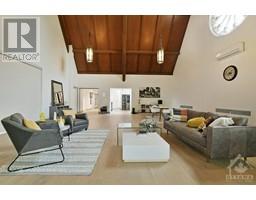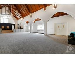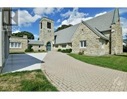 ARCHITECTURALLY SIGNIFICANT - Built in 1957 in a style reminiscent of rural English stone churches & completely modernized in the last 2 years. Wonderful views of the Iroquois Golf Course & the St. Lawrence River where ships can be seen entering the Iroquois Locks. Beautiful leaded glass windows, 32 foot ceilings, magnificent woodwork have been tastefully combined with updated bathrooms, laundry, kitchen, primary bedroom suite and gym including all the gym equipment, TV & mini-frig. All new wood & porcelain tile flooring. The exterior & interior are almost all on one level. New EPDM flat roof and R60 insulation in west wing. The gas heating system has been serviced & a new Ductless Heat Pump added for A/C. All the new counter tops are quartz. All appliances are new high-end LG & KitchenAid. NEW exterior doors & 660 sq ft garage. Includes robotic vacuum, all custom blinds, all installed sensors, alarms & video monitoring equipment. 1-GB Internet is available. CHECK OUT NEW DRONE VIDEO. (id:25350)