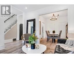 In Westboro on quiet street, investment rental property. Upgraded 3-storey, 4+1 bedroom Victorian home has self-contained in-law suite rental located at back of home. In front, home's full front veranda leads to foyer with closet. Spacious rooms are light-filled with 9' ceilings, elegant modern lines and tasteful décor. Hi-end 2021 luxury vinyl plank floors. Living room open to dining room with upper horizontal window. Off diningroom, laundry closet and powder room. Kitchen new cabinetry with glass display shelfs, quartz counter, deep sink, breakfast nook and pantry. Tempered glass rail staircase to primary bedroom with walk-in closet. Corner windows in second bedroom. Third bedroom (office) leads to sunroom. Smartly designed 4-pc bathroom. On third floor, big bedroom with walk-in closet plus, finished loft for flex space. Back in-law suite rental has living-kitchen area with hardwood floors. Bathroom tiled glass shower. Finished lower level with bedroom, separate laundry plus storage. (id:25350)