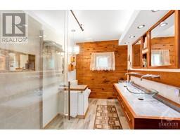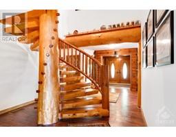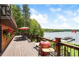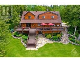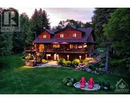 Facing west on Malcolm Lake, park-like acres of ultimate luxury. Magnificent custom walkout 4+1 bed, 4 bath log home with 600' waterfront and stunning lake views. Foyer has walk-in oak closet. Executive office. Livingroom dramatic vaulted ceiling, stone fireplace and bay window. Formal dining room built-in buffet. Exquisite kitchen birch cabinets, Cambria quartz 13' island and Thermador appliances. Dining lounge quartz wine station with Bubinga bar and patio doors to phenomenal Brazilian teak deck overlooking lake. Main floor bedroom/den, impressive 4-pc bathroom and laundry room. State-of-art log staircase to primary suite with fireplace, dual closets and lake sunsets. Luxurious granite ensuite showcases lake. Three big bedrooms and bathroom. Lower level workshop and familyroom walk-out to amazing patio lake views. High-end sound system. Roof 2020 architectural shingles. Breezeway to double garage. Generator. Irrigation sprinklers. Swimming. Dock. Peastone sand shore. Bell hi-speed (id:25350)