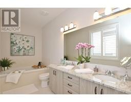 Absolutely stunning! 3 bedroom 3 bath family home on corner lot! Unbelievable amount of upgrades. Too many upgrades to list. 9 ft. ceilings on main. Spacious Great Room and dining room. Beautiful upgraded hardwood throughout. You'll love the upgraded chef's kitchen with gas stove, backsplash, plenty of cupboards, pot & pan drawers, pantry and quartz countertops. High end appliances. Great Room has gas fireplace with tile surround up to the ceiling. Hardwood on stairs. Large master bedroom has 5 pc en-suite and walk-in. 2 other good sized bedrooms with walk-ins, full bath and family room. Front balcony overlooks the park (premium lot). New window coverings. Partly finished lower level with recreation room, laundry room and storage. Put this home on your list! (id:25350)