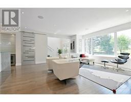 A contender for the 2021 GOHBA Awards this spectacular home overlooks NCC parkland & Hampton Park and is located three blocks from the excitement of Wellington St and Richmond Rd. Home was custom designed to take full advantage of the exclusive location. Main floor office with private entrance. Oversize windows in all rooms. Home flooded with sunshine in winter, shaded by mature neighbourhood trees in summer. Ground level features double-island eat-in kitchen with high end appliances, living room with fireplace, dining/family room, and den. Three generous bedrooms, laundry and full bath on second floor. Primary Bedroom features 12' ceiling, luxurious ensuite and two walk-in closets. Finished basement has three 4x5 foot windows, high ceilings, full bathroom with walk-in shower and easy potential for fourth bedroom. No-maintenance landscaping and generous deck/patio in the fenced backyard. Custom glass railings on interior stairs and outdoor deck. Balance of Tarion warranty. 24hr Irrev (id:25350)