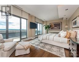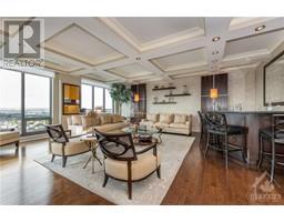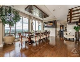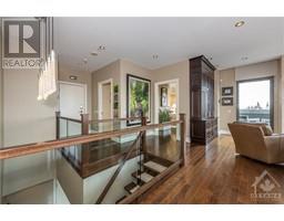 Utopia in the sky! This 3143 sqft 2 storey penthouse offers unparalleled vistas of Parliament Hill, iconic Ottawa landmarks along the Ottawa River and Gatineau Hills and the vibrancy of the ByWard Market. Upon entry you will be greeted with floor to ceiling windows and gleaming rich oak hardwood flooring. The artfully designed kitchen by Heritage Kitchens offers Miele oversized double ovens, induction cooktop stove, steam oven, induction microwave, granite counters and backsplash, walk-in pantry with custom millwork cabinetry, custom cutlery organizers and spice rack. Wonderful oversized dining and living rooms separated by double-sided custom gas fireplace. Wet bar that's perfect for entertaining. Master retreat includes custom milled closet cabinetry, 5pc ensuite with onyx floors & tub/shower surrounds. Other features include walk-in wine cellar, Weber BBQ with natural gas hookup, power remote window coverings, elevator to 2nd level, Control 4 Smart System, in unit laundry must see! (id:25350)
