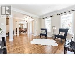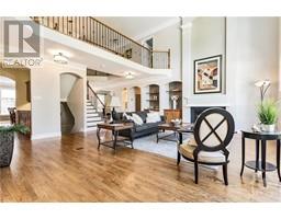Welcome to this elegant executive home complete with well appointed finishes and updates. From the moment you enter this home you will be amazed by the soaring ceilings and sprawling windows, hardwood floors, stunning open to above with catwalk across the huge family room. Every room is oversized for todays family needs with over 5000sq. ft. of living space. Formal living, dining room complete with large butlers pantry is perfect for entertaining! Bonus room above garage, huge main floor office or flex room could be that 5th bedroom. All bedrooms have access to ensuite baths, the primary bedroom is a total retreat with double sided fireplace sitting area and access to private deck overlooking the stunning landscape. Lower level with large windows allow for plenty of natural light and has finished space for both children and adults needs. The backyard is private, filled with mature trees, playground, oversized decks and green space galore! This home is a must see! 48 hour irrevocable . (id:25350)