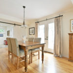 The single-car garage offers an interior entry into the home with a well-planned mudroom with organizers and closet as well as a separate main floor laundry with front-loading machines and ample storage. All of this is separated from the main living space with a “barn door” that divides the entertaining space from the side entry and workspace.