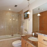 Tucked away in a private corner is an area to chill and get caught up on the latest film or evening news. The balcony flows nicely from the formal space and is complimented with a beautifully tiled surface. The main bath is strong with a dramatic piece of earth toned granite and cabinets that compliment the dramatic stone surface. A full wall of closet space in this bath and a glass enclosed shower/tub master the concern about space and light.