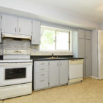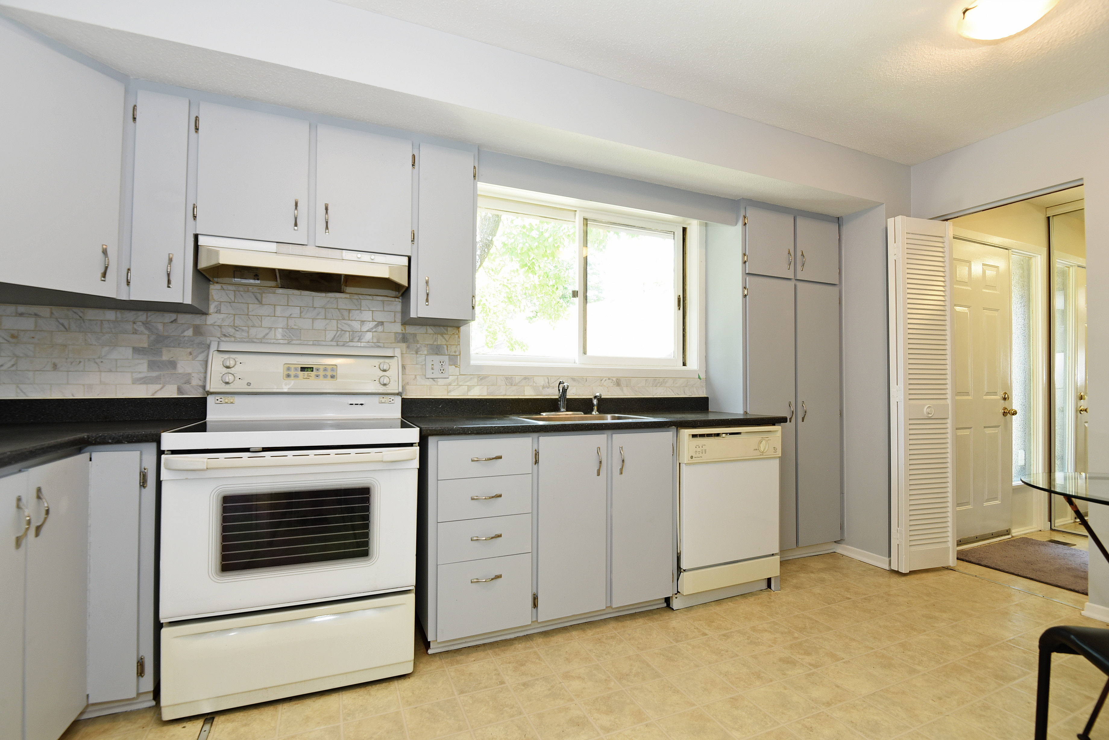 The kitchen has been updated with fresh soft gray paint and a white marble backsplash. Spacious enough to have a breakfast area. There is also space for an enclosed pantry and laundry.