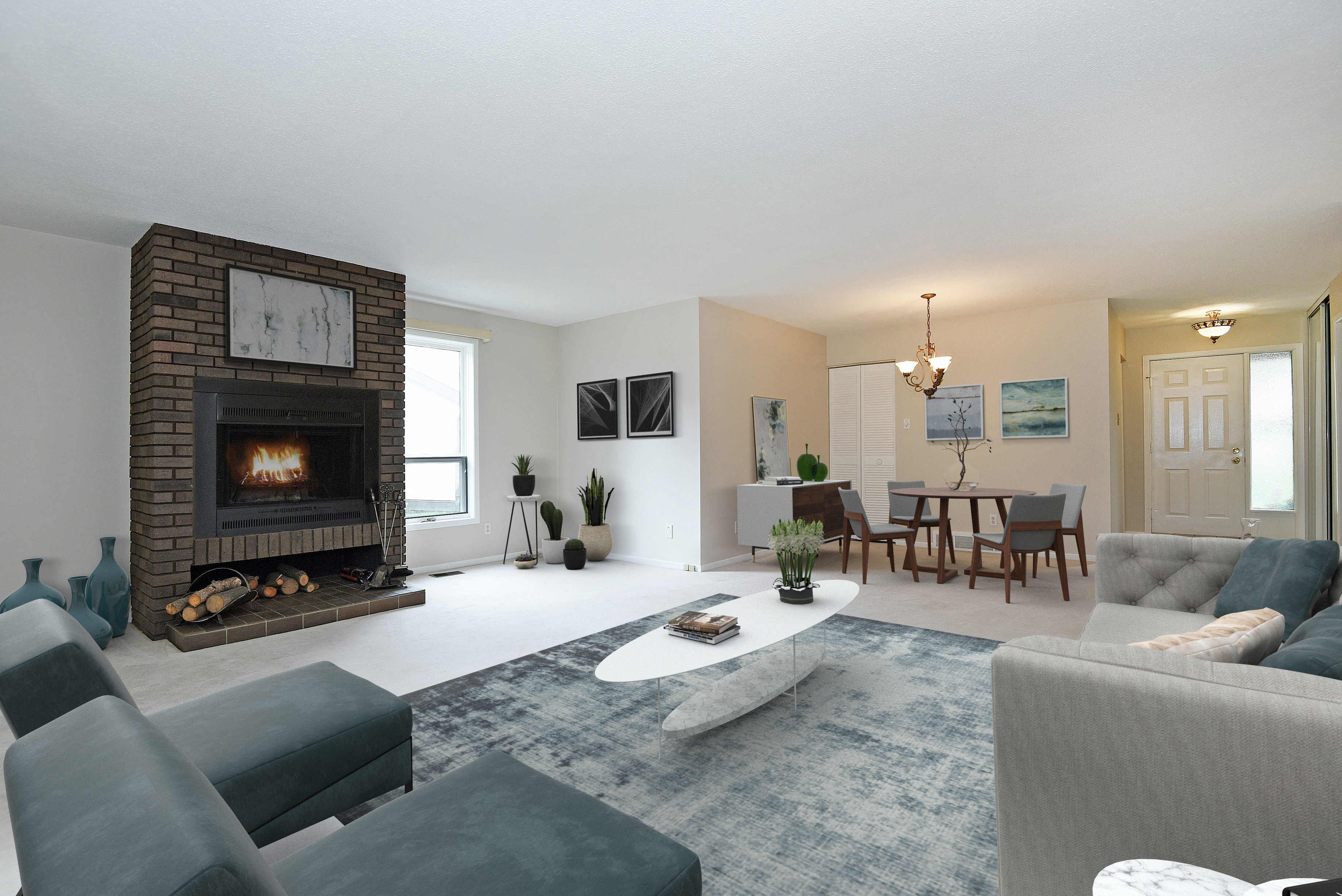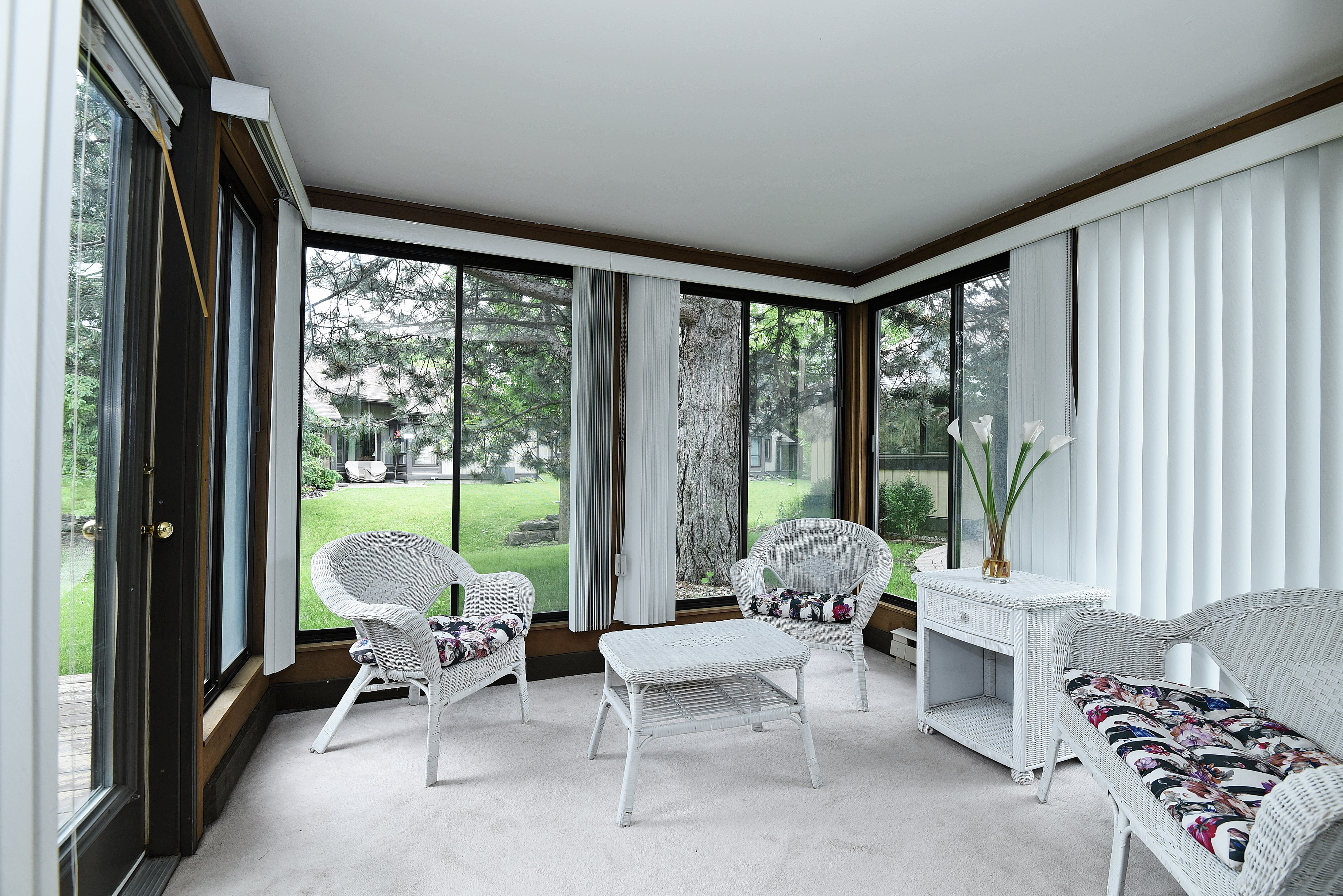 The floor plan of this 1476 sq. ft. condo on one level boasts open and airy public space that is anchored by a floating wood burning fireplace. The open concept living room dining room combination makes it easy to adjust for large or small gatherings with overflow into the solarium that overlooks the garden and rear garden deck.