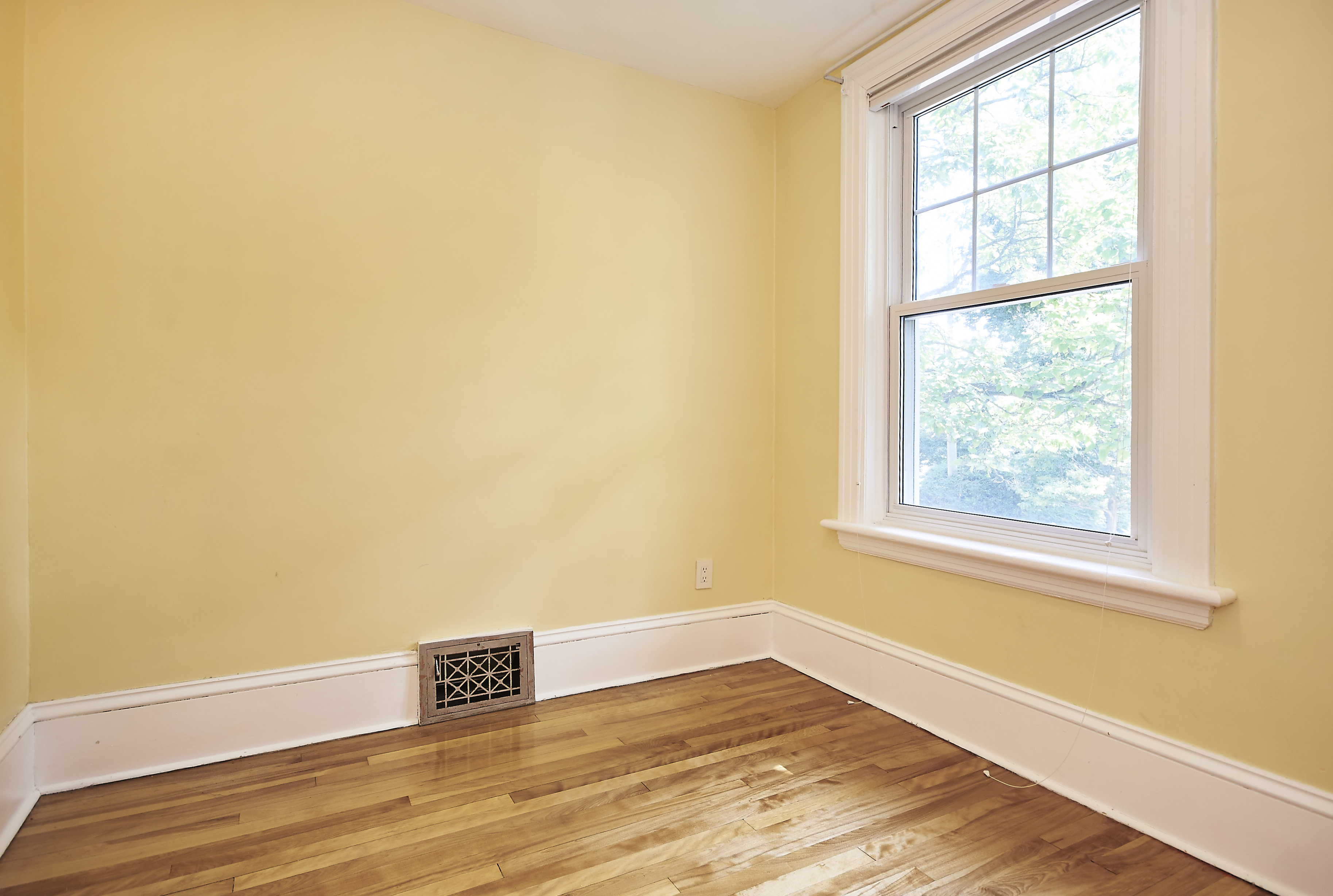 The main level offers a living area anchored with a mantle and electric fireplace that generates heat and a beautifully scaled dining room that overlooks the rear garden and embassy grounds beyond.