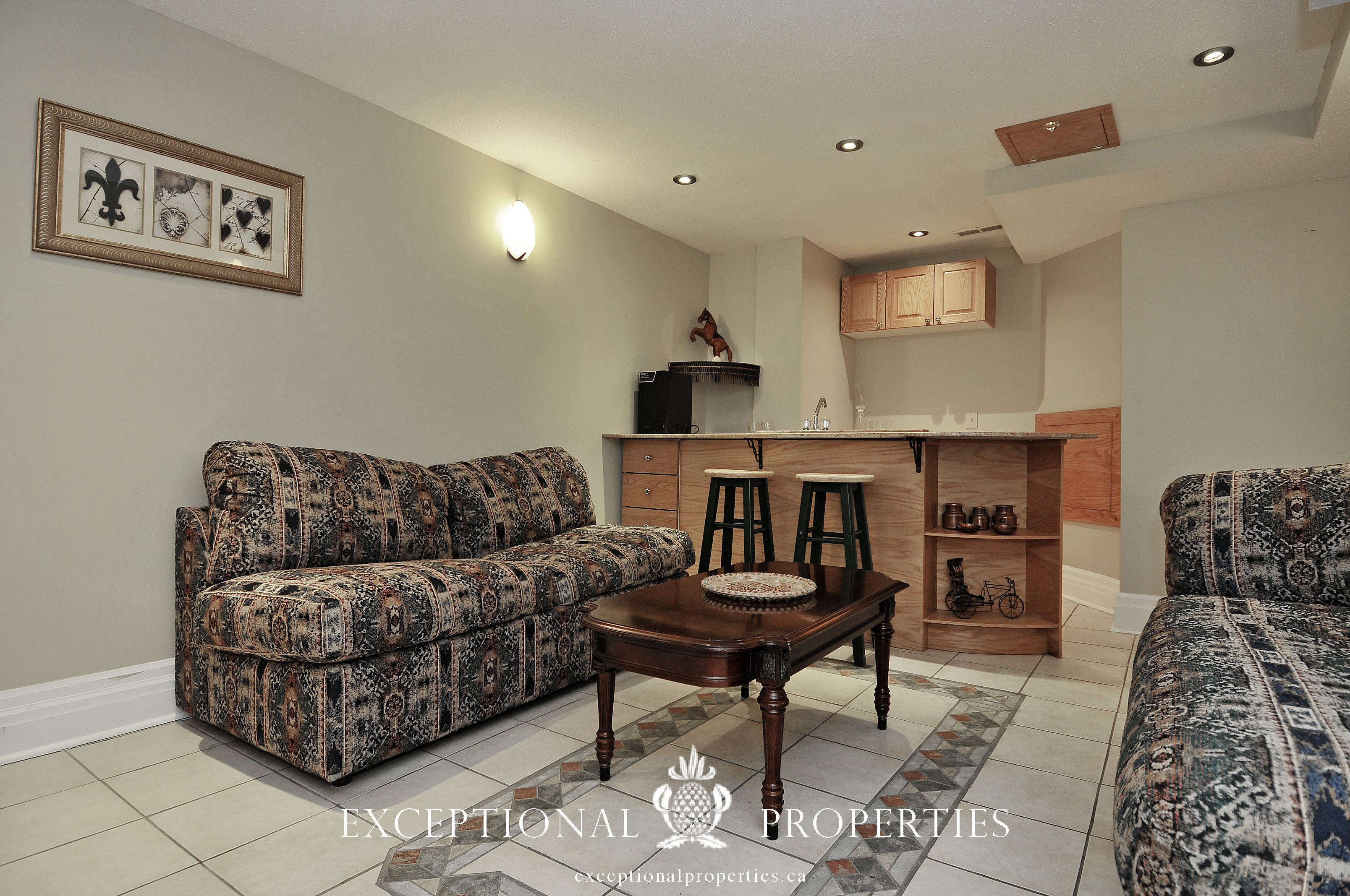 The lower level of this delightful residence accommodates the laundry as well as a 6th bedroom which this family currently uses for their home gym. Complete with a full four piece bath as well as a small kitchenette and sitting area it is an ideal space for a live in care giver.