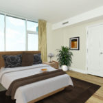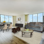 Unit 1506 is a 2136 sq. ft. corner spot and boasts all the benefits of the corner position. Wide and spacious entry halls are an attractive feature as well as solid core doors throughout. Views of the river and surrounding neighbourhood create a calming and peaceful ambiance in this space. Natural light floods the interior highlighting the newly installed wide planked hardwood floors. A new kitchen has recently been added and features sleek gray toned cabinets that are perfectly complimented with seamless quartz counters. The kitchen includes a breakfast dining area with access to the enclosed glassed balcony which extends the use of the balcony into the colder seasons.