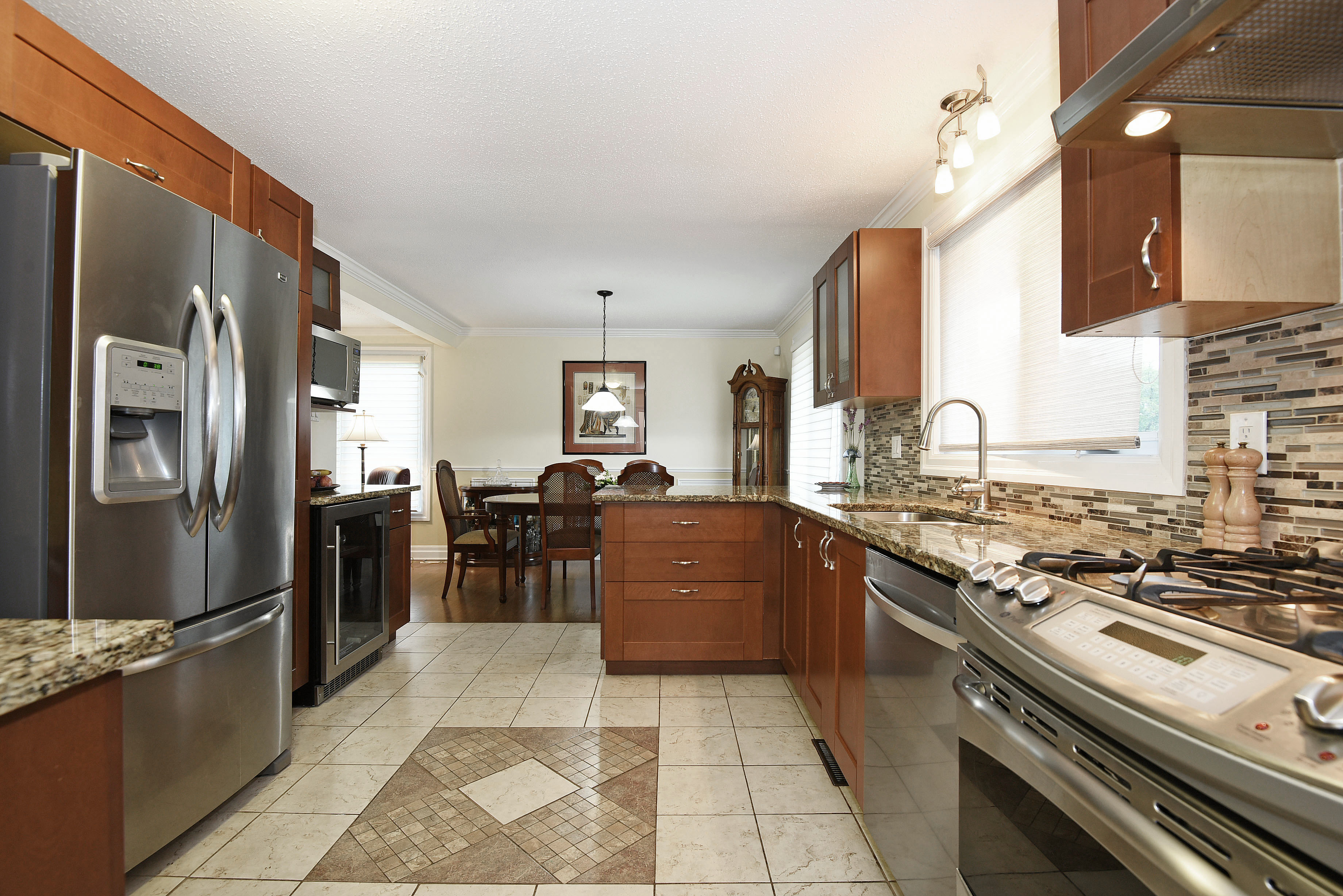 The professionally landscaped gardens and attractive interlock laneway and walkway welcome you to this fully updated bungalow – there is nothing to do here but move in and enjoy. The foyer welcomes you into the home and creates an ideal separation between the garage and the living space, ushering you into the open kitchen and dining area. The recently updated kitchen has been improved including stainless appliances including gas range and beverage centre.