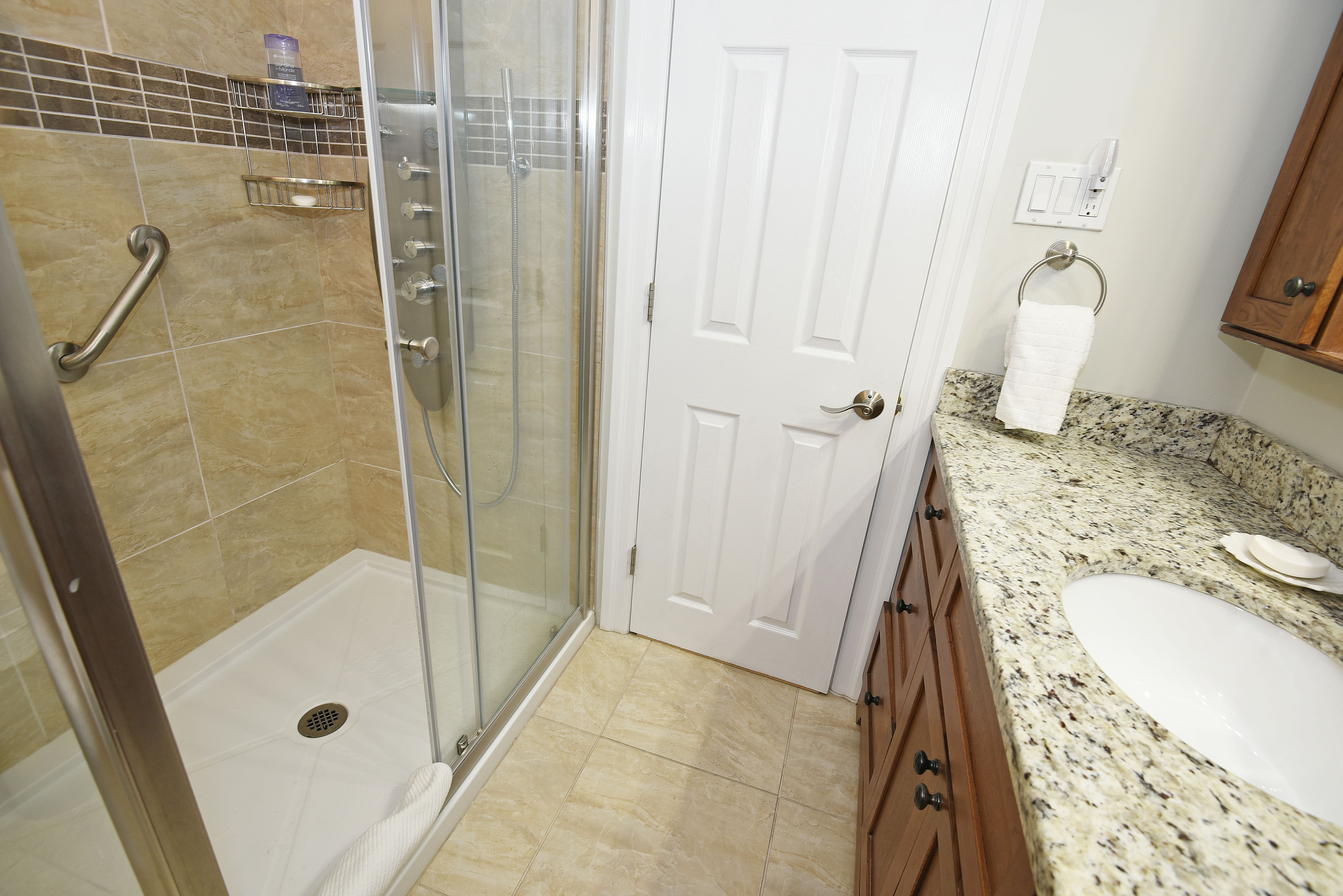 The well-scaled living room features large window openings with custom window coverings and is anchored by a modern stone clad fireplace. The light-filled space is complimented with gleaming hardwood floors throughout the interior. The main floor offers 2 bedrooms with a beautifully updated main bath that boasts granite counter tops and a walk-in shower.