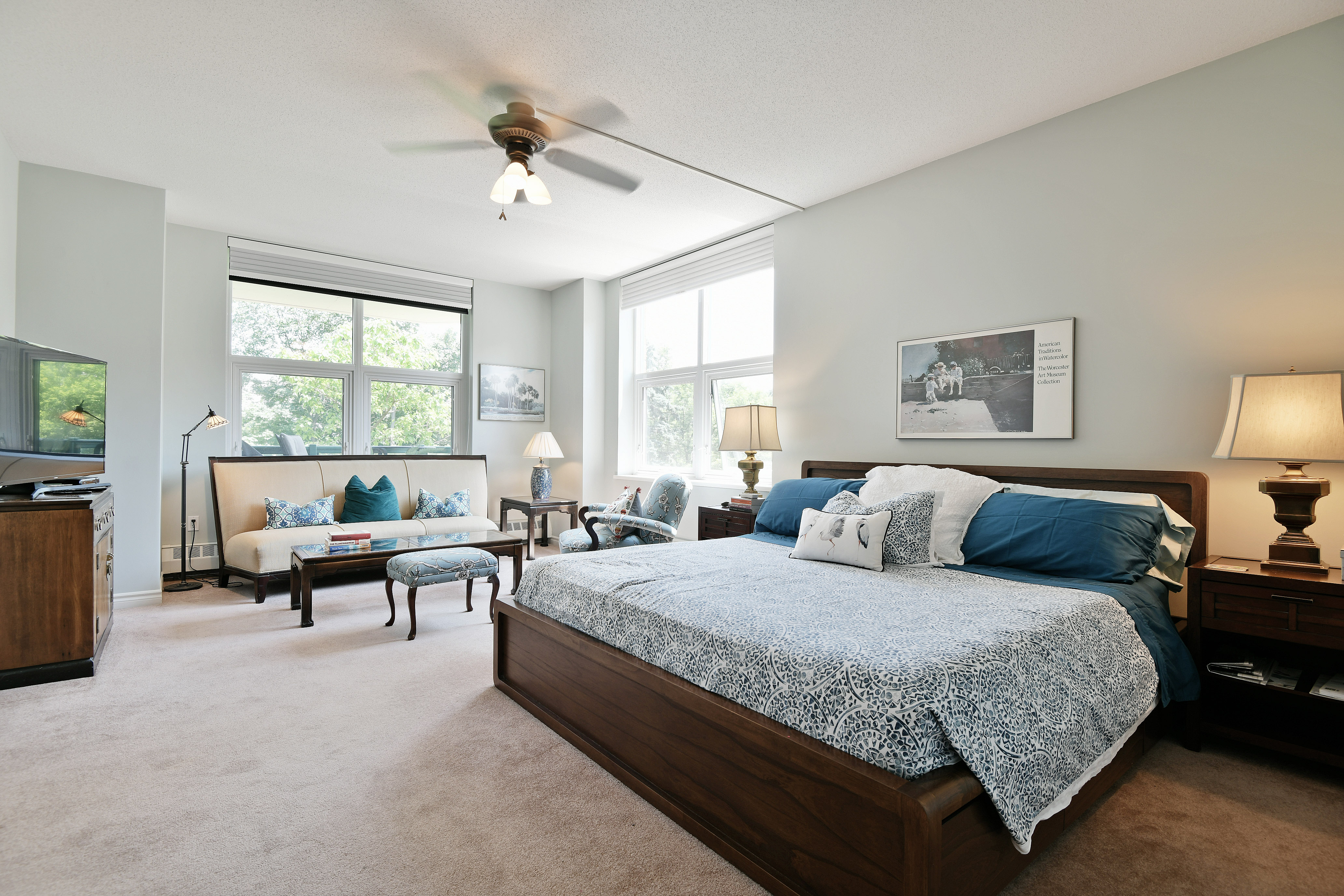 This distinctive building is located in a special location surrounded by diplomatic neighbours, facing MacDonald Gardens Park on one side and the Rideau River on the other. Such a notably lush setting is exceptional so close to the ByWard Market with easy access to bike paths. With only 4 units per floor, the building has an intimate boutique feeling. This residence has 2010 square feet, with a 2-bedroom and den layout. The living and dining rooms have Brazilian hardwood floors, generous proportions, a fireplace, custom built-ins and access to a southeast-facing balcony. The island kitchen has copious amounts of storage. Tucked away from the living spaces, the master bedroom has a lounge area, custom walk-in closet and a grand ensuite with a window. Having the atmosphere of a sheltered treehouse this residence has a direct visual connection to the verdant landscape surrounding the building. Two parking spaces and a large storage locker are other key features of the property. This is a showpiece that is current and updated throughout with nothing to do but enjoy, relax and live with no worries for maintaining grounds. The garden space and terrace in the rear is a beautiful space spot to enjoy the outdoors for larger gatherings. Come and see for yourself!