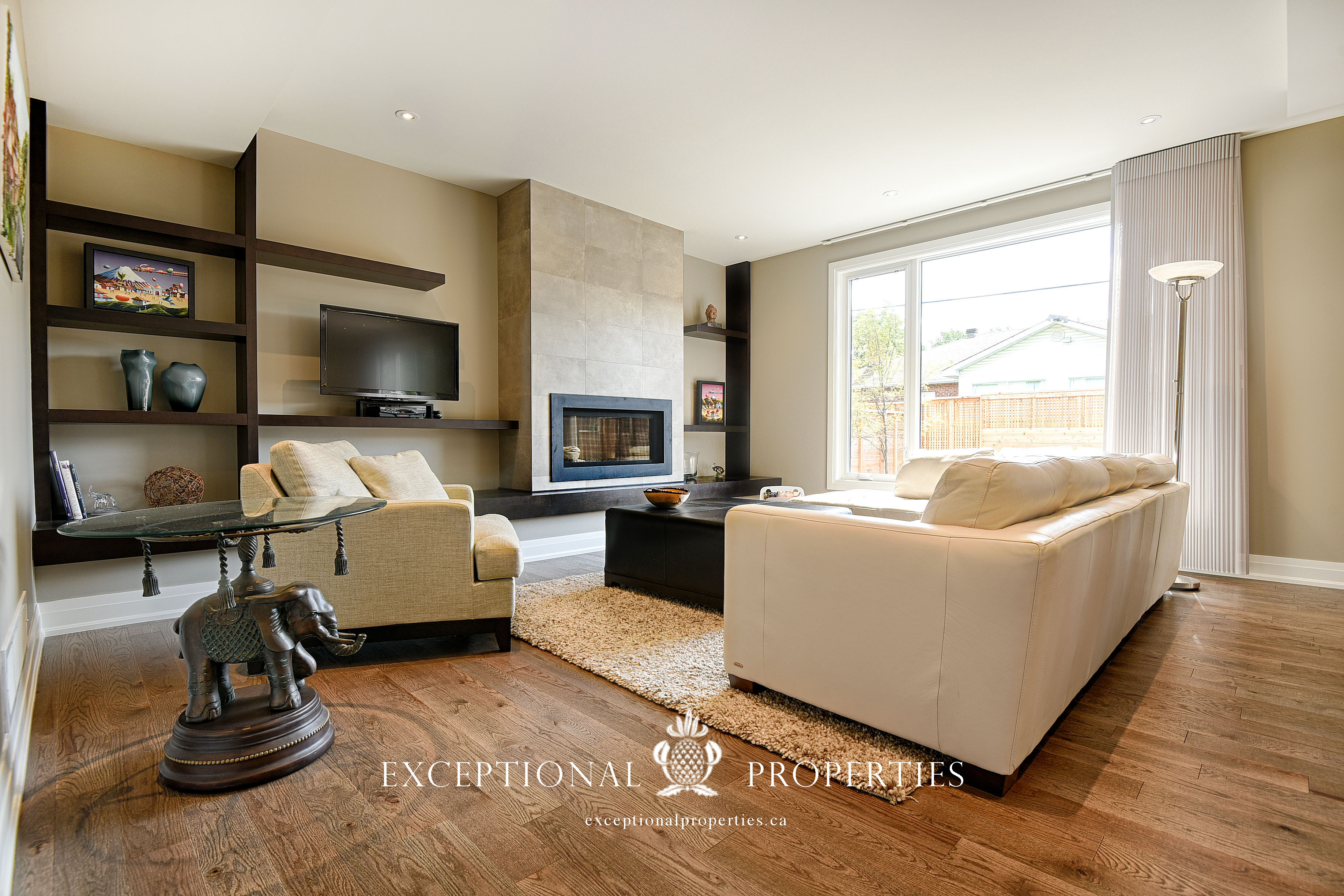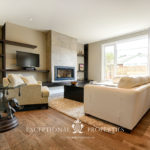 Warm tones create a cocoon-like atmosphere contrasted by tall ceilings and open space. The formal gathering space boasts lots of natural light through large window openings that allow the sunshine from the beautiful southern exposure.