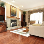 The more formal space in this home is on the other side of the residence allowing for a great division of public and family space. The living room is warmed by a fireplace and features a beautifully scaled bay window where the view is easily visible to admire. The house is finished with warm toned hardwood floors throughout the first and second levels.