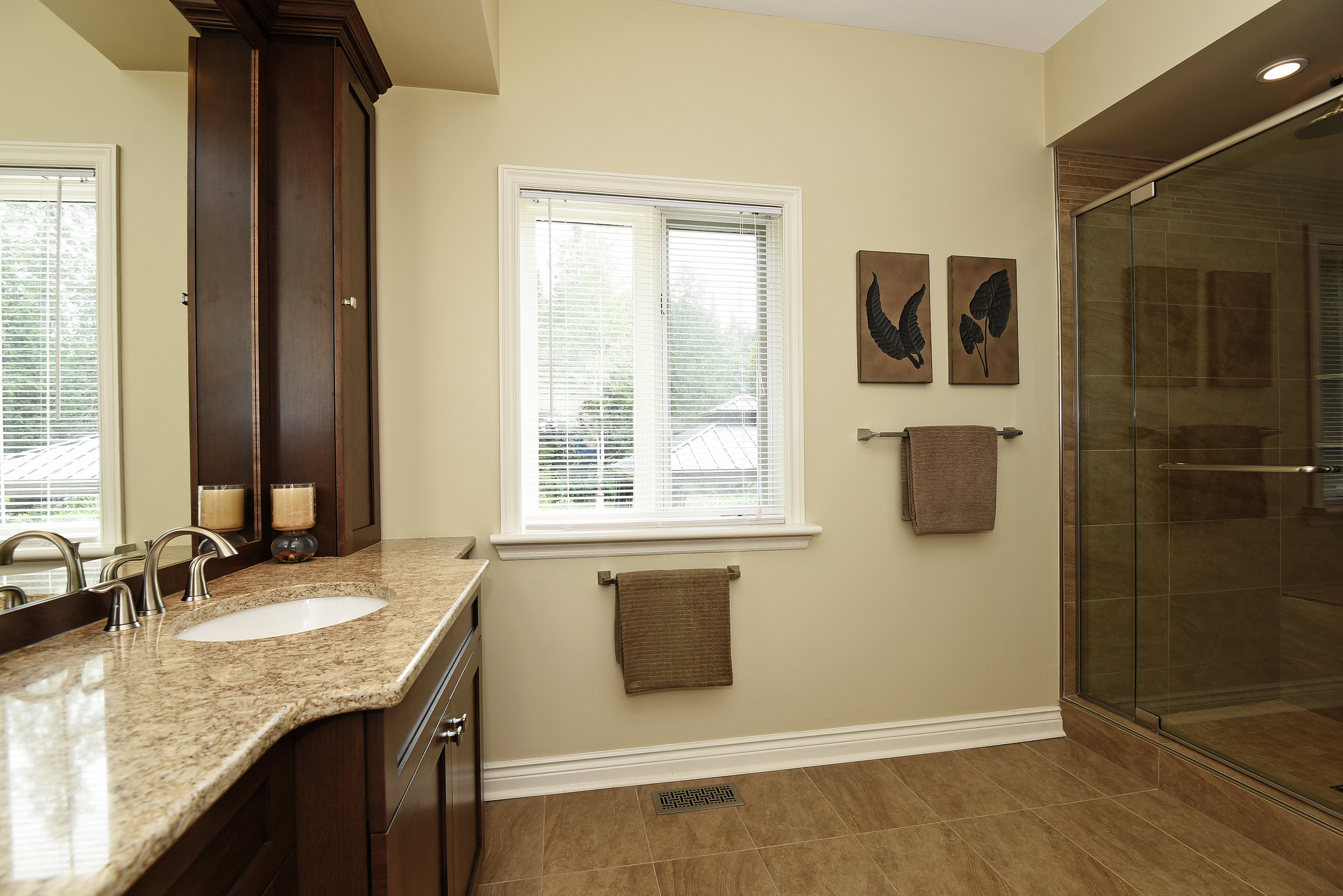 The family wing of this home offers 2 additional bedrooms, all well scaled and bright. The spacious main bath has been finished in warm soothing tones, beautiful tile work and handsome custom cabinetry.