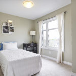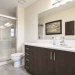 Three well-proportioned bedrooms and 2 1/2 baths—with the master ensuite boasting a long, quartz vanity surface and shower enclosure with bench seating—are featured on the third level away from entertaining space.