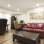 The lower level is partially finished with dark, wide-planked laminate flooring and is the ideal space for a home gym or office. There are well-appointed closets and plenty of storage.