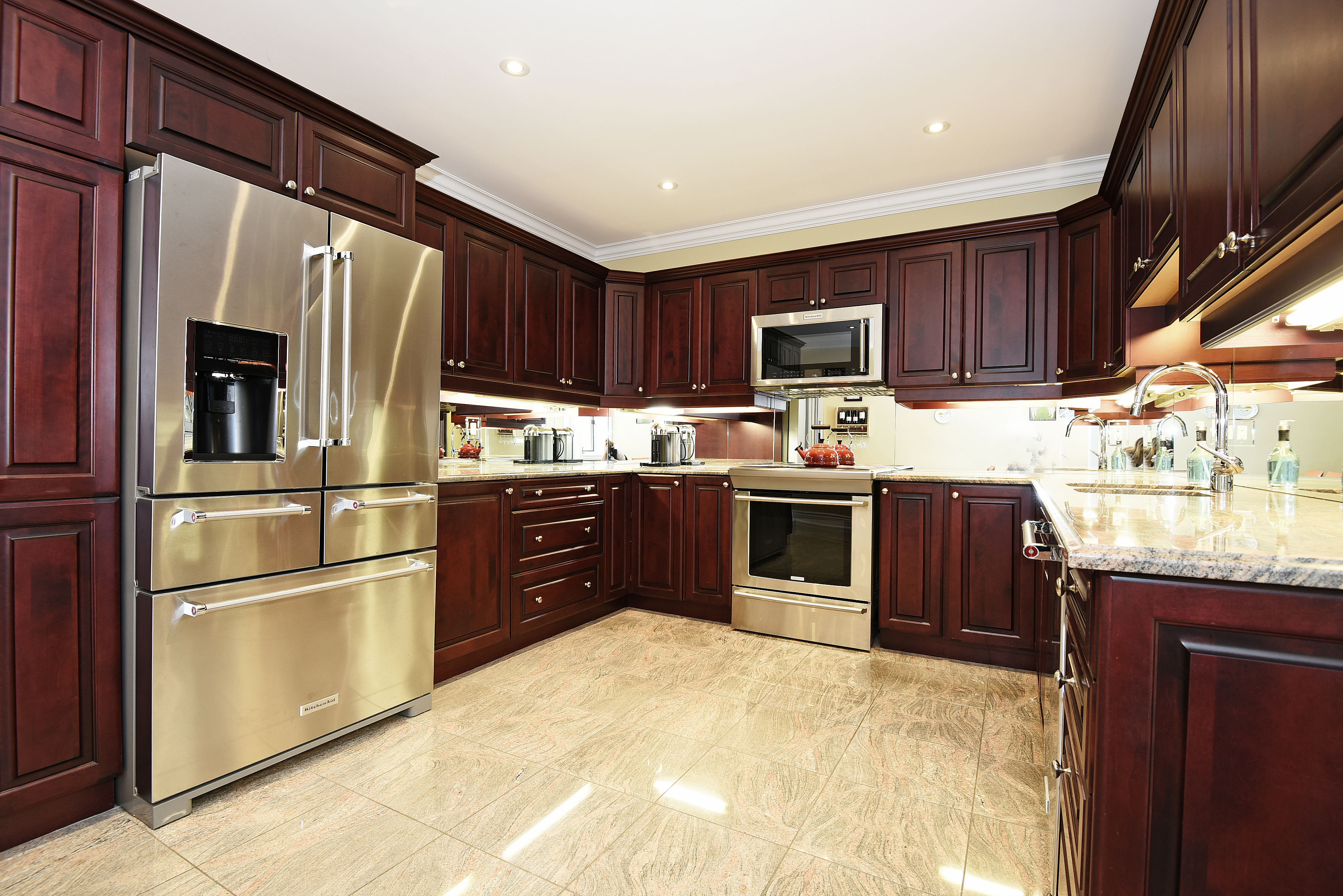 The gourmet kitchen is spacious and recent updates include all new high end appliances. The dark wood toned cabinets and sweeping granite counter surfaces create a wonderful space for those who love to cook and the design includes a sunny breakfast area located just off a bright and roomy family room.