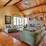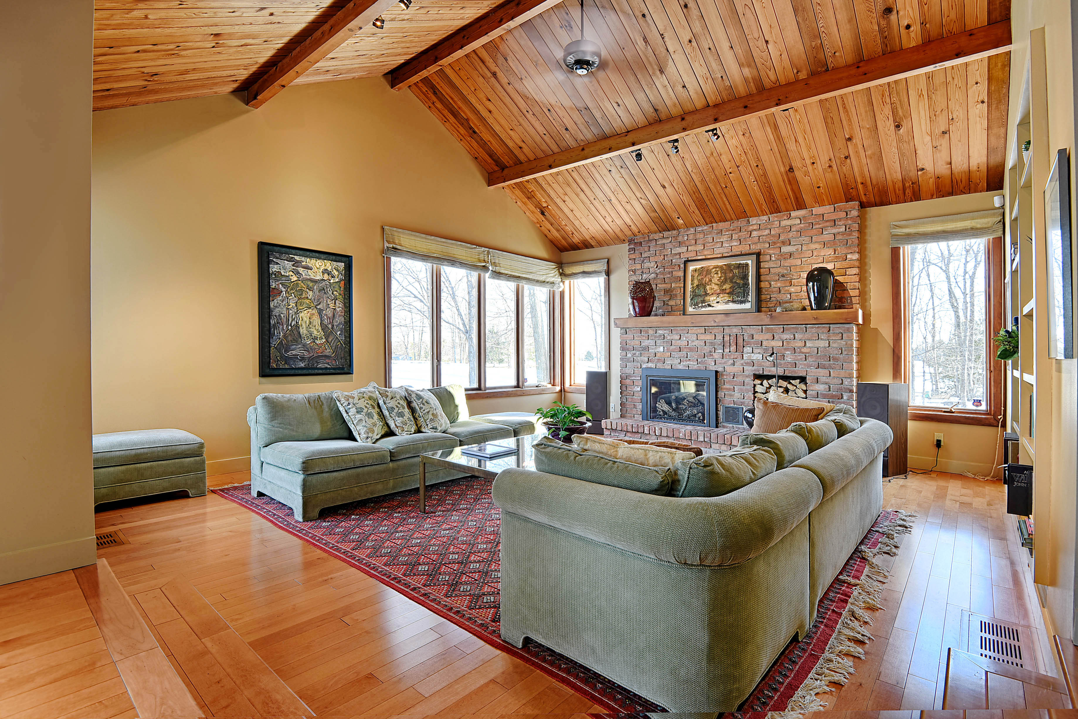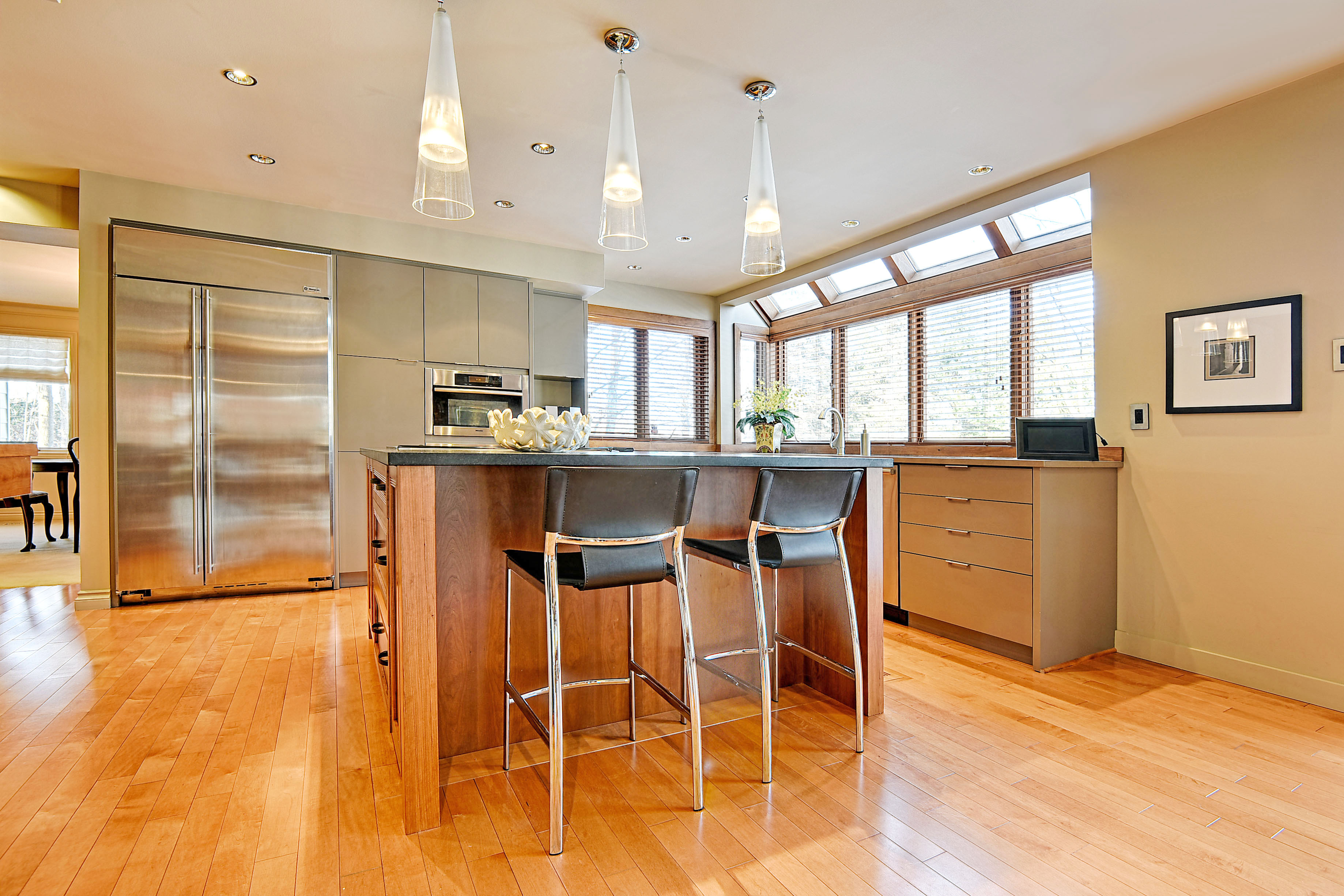 This home will definitely have you feeling as though you are at a lake retreat with the fabulous sunken family room that boasts soaring ceilings finished with BC cedar and a commanding state of the art gas fireplace with floating mantle. The fireplace is an additional heat source should it be desired, while the room and the remaining space beckon all to come and take a seat! Great built-ins are awaiting a fine collection of books, photos or any other fine memorabilia.