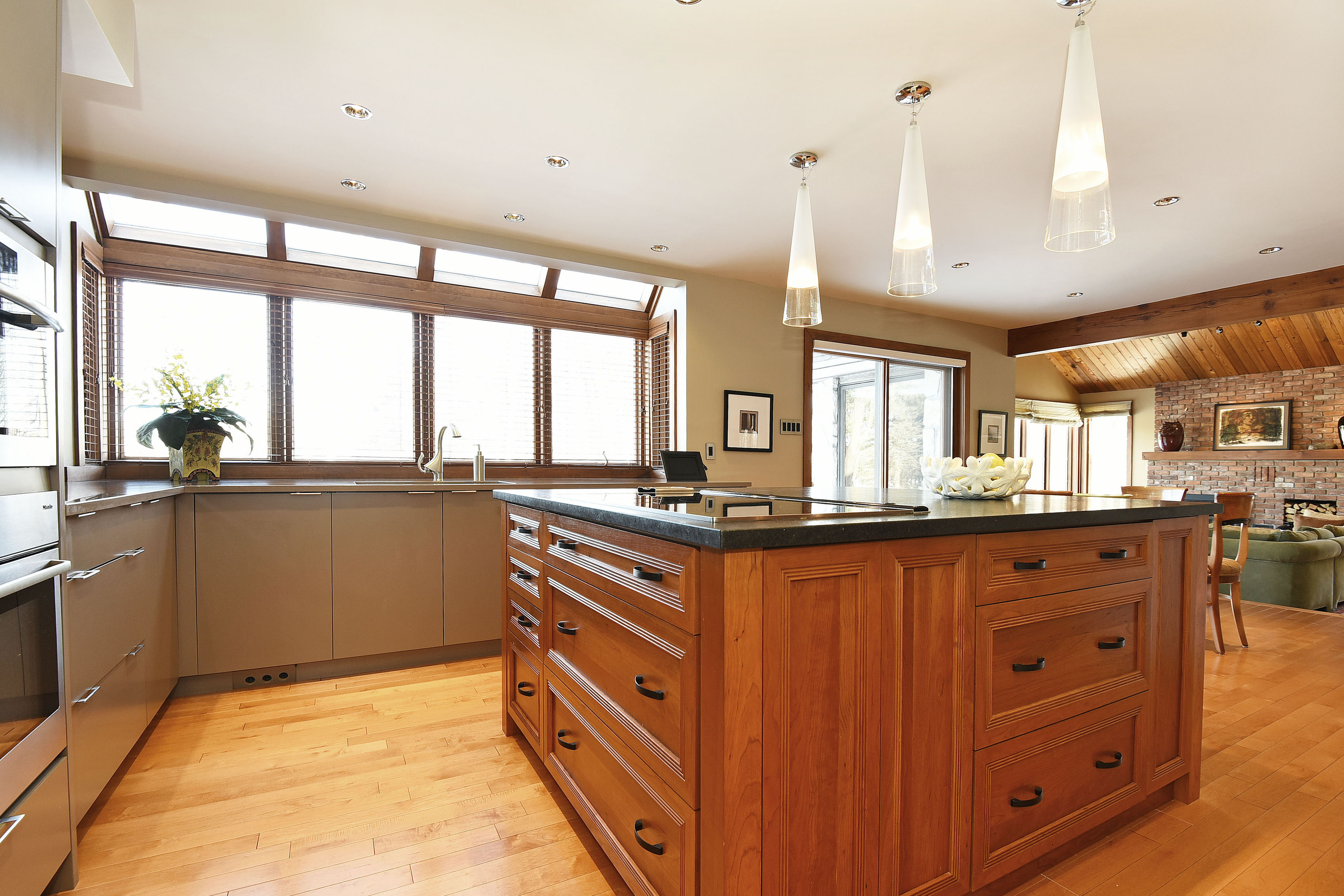 The door opens into a spacious entry with a tall cathedral ceiling and a sweeping staircase to the second level. The formal space in this home is very generous with well scaled rooms. The formal living room has been used for years as a music room and is filled with natural light from the bay window that overlooks the garden. Warmed by a wood burning fireplace, the mantle with its fluted detail and marble surround creates a strong feeling of tradition while the fireplace suggests relaxation. The formal space flows easily and includes a beautifully scaled dining room that offers easy access into an amazing updated kitchen, that was recently designed at the hands of Ottawa design firm 2H Interior Design. This kitchen boasts all the bells and whistles with deep quartz counters and a large central island. High end stainless appliances are a wonderful embellishment including the 5 burner Miele Induction cooktop and over sized Dacor downdraft that easily manages the exhaust. The Miele wall oven is complimented with a convenient Miele micro convection that will manage any over flow required when cooking for large crowds. La pièce de résistance is the fabulous 275 bottle wine cellar that is strategically located in the hub of the household. The kitchen also features a delightful breakfast area that offers easy access to the rear terraced deck with views of the gorgeous rear grounds.