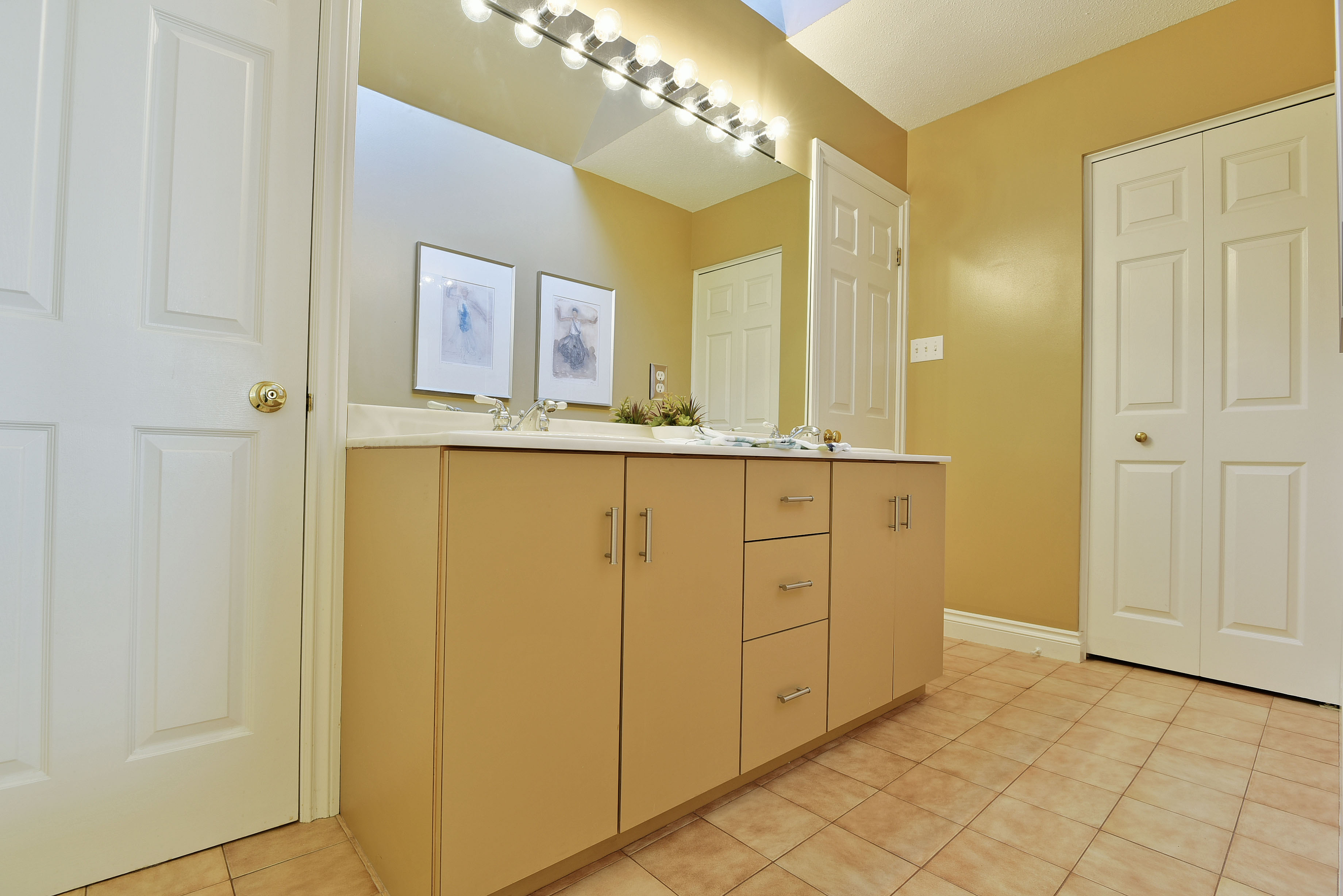 The second level features a hallway gallery that overlooks the entry and two nicely proportioned bedrooms each with double closet doors and built-in storage. The main bath is well laid out with double sinks and a separate space for both the shower and commode.