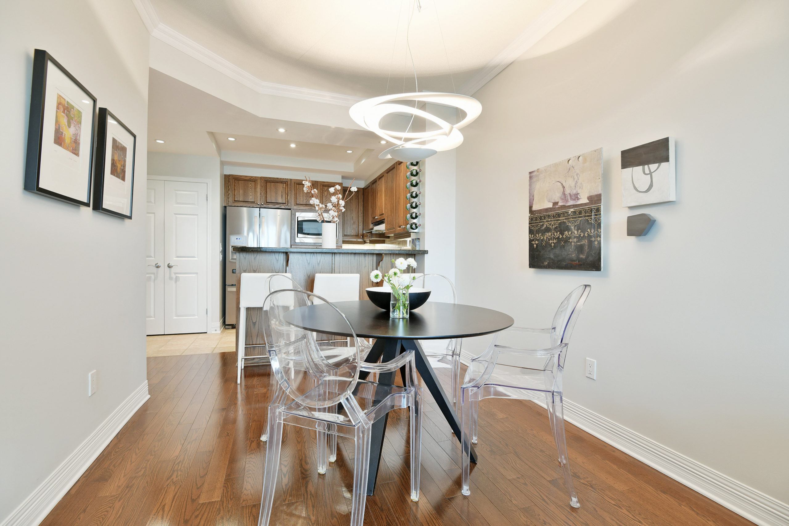 The floor plan allows for a home office and open entertaining space with kitchen, breakfast bar, dining and living space all open to the views available from all rooms. The location offers easy access to parks, trails, golf, transit, shopping and restaurants of Wellington Village and Westboro.