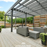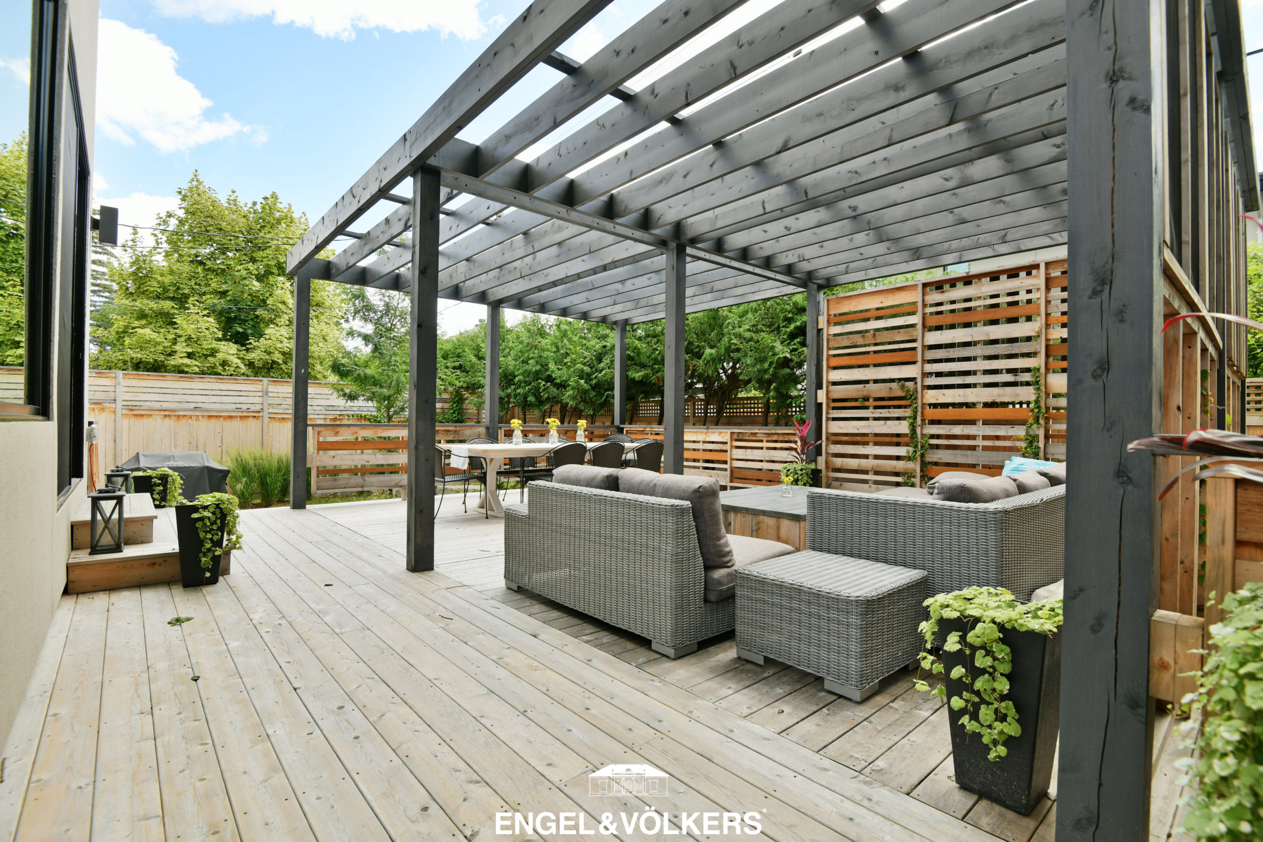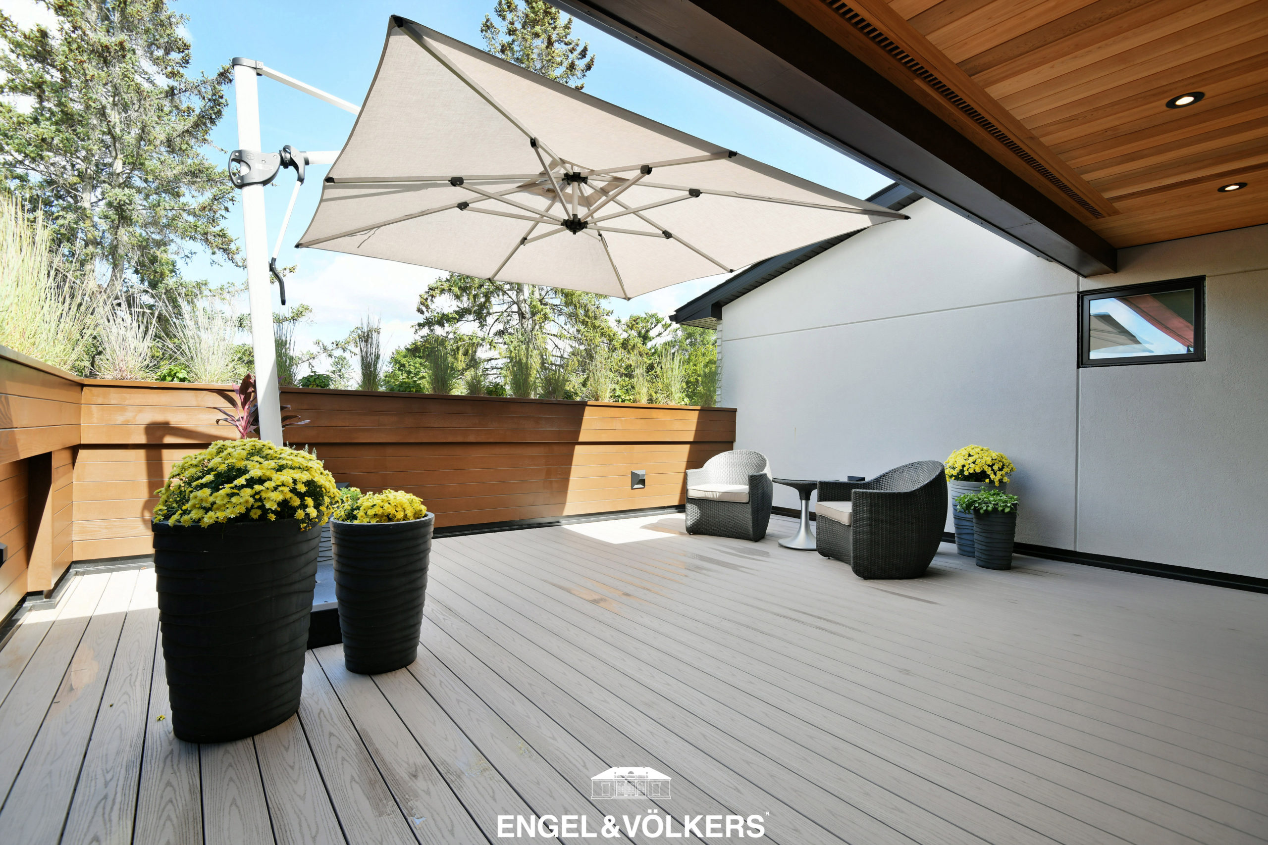 This custom-built home is right on trend for what today’s buyers are seeking. It not only has beautiful interior space with high ceilings, large window openings, Cambria double waterfall edge kitchen island, and light-toned hardwood floors, it also has the added bonus of two exceptional outdoor spaces capturing two different exposures.