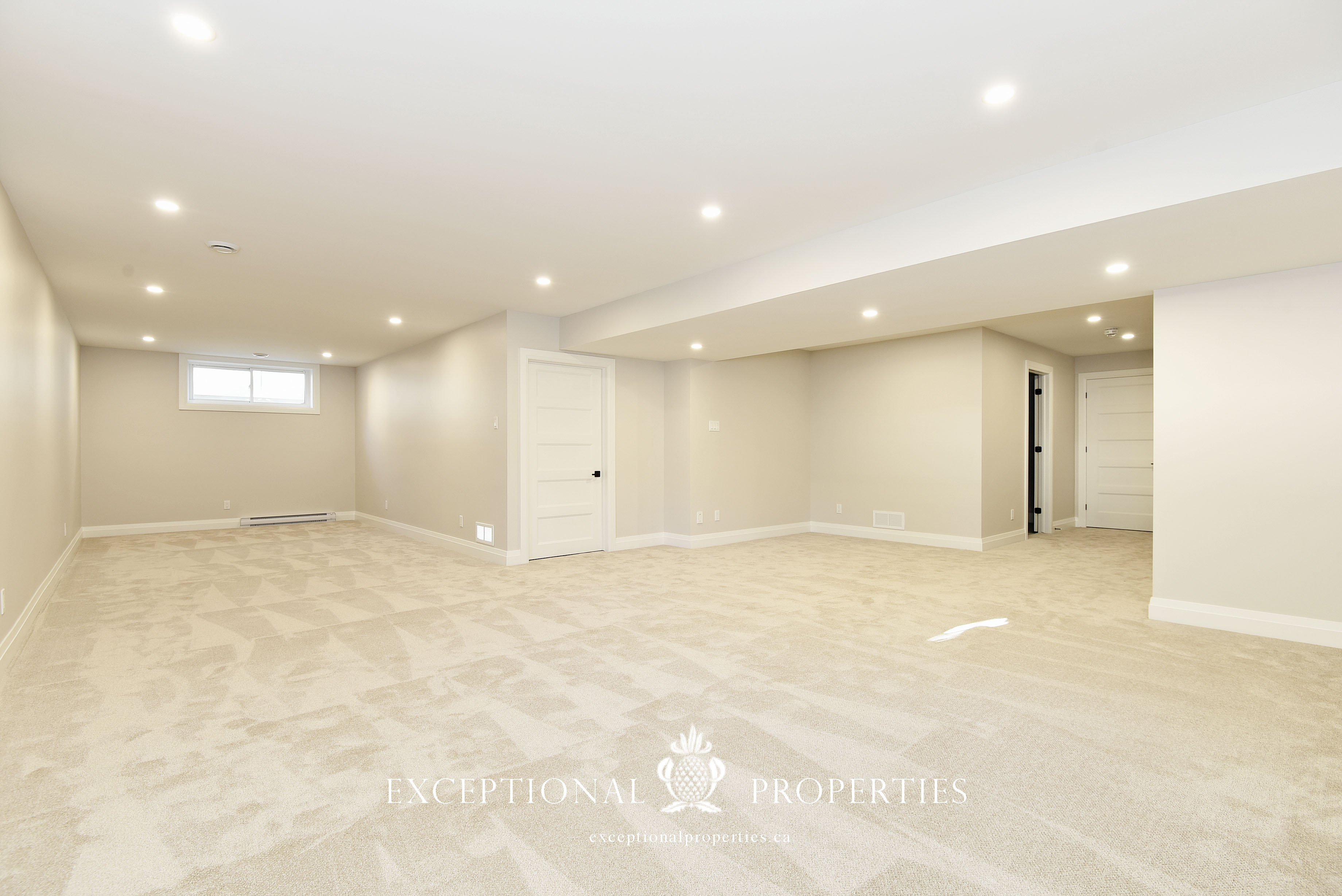The lower level reveals just how large this spacious home is. Finished in neutral tones, there is a roughed in space for a three piece bath.
