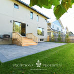 The entrance into the garden is through two large patio sliders onto a cedar deck that will accommodate a grill for use during winter months. On the lower level of the garden there is a terrace and garden that offers landscaped accent areas with large rocks. Columnar oaks have been planted on the west side to provide privacy in summer months.